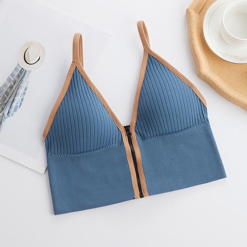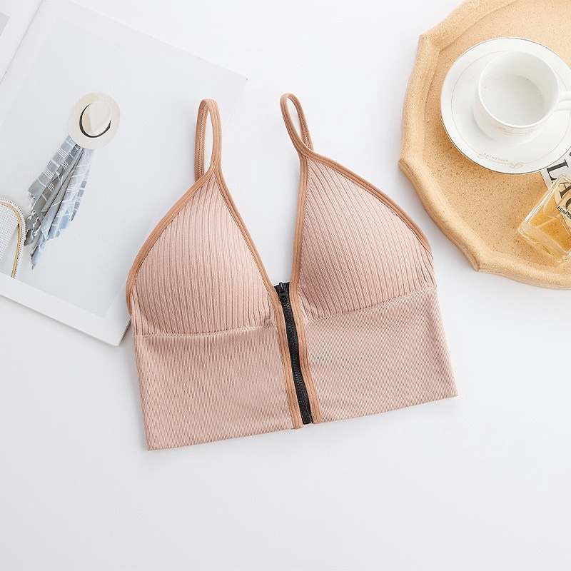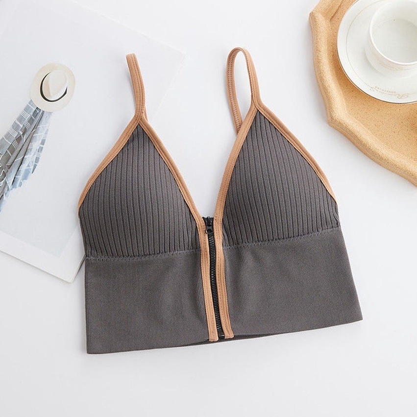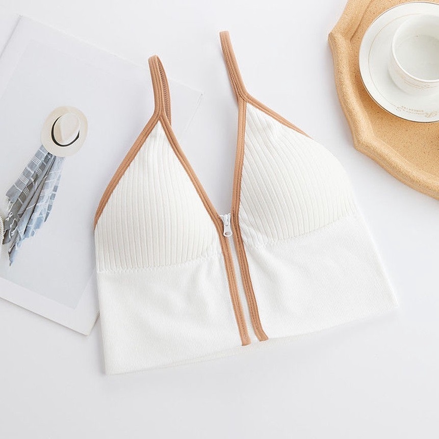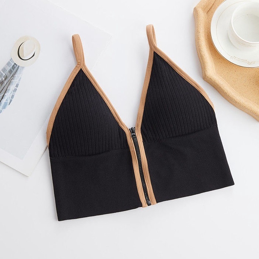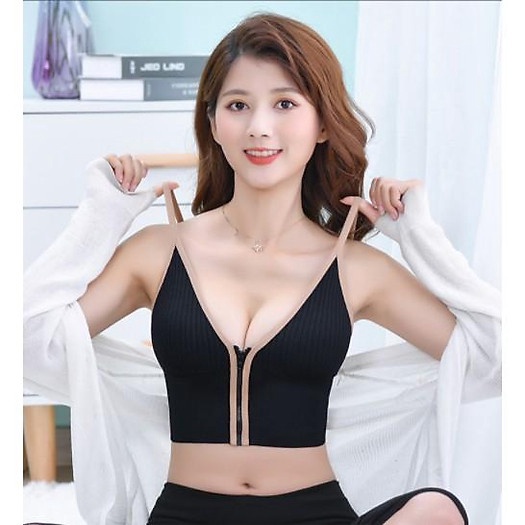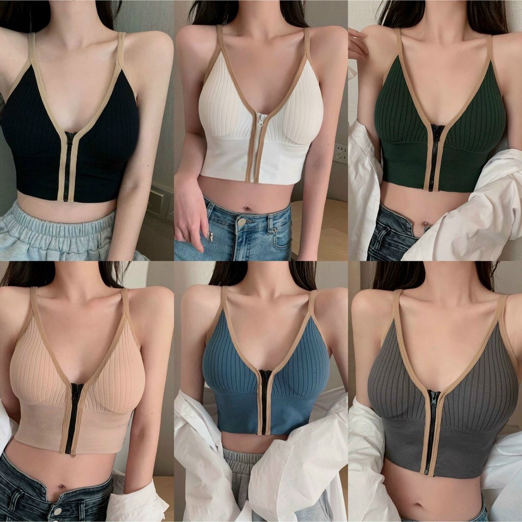 - Tên sản phẩm: Áo Ngực Gân Nữ Cá Tính 2 Dây Cổ V Khóa Kéo Trước Croptop – Vanass